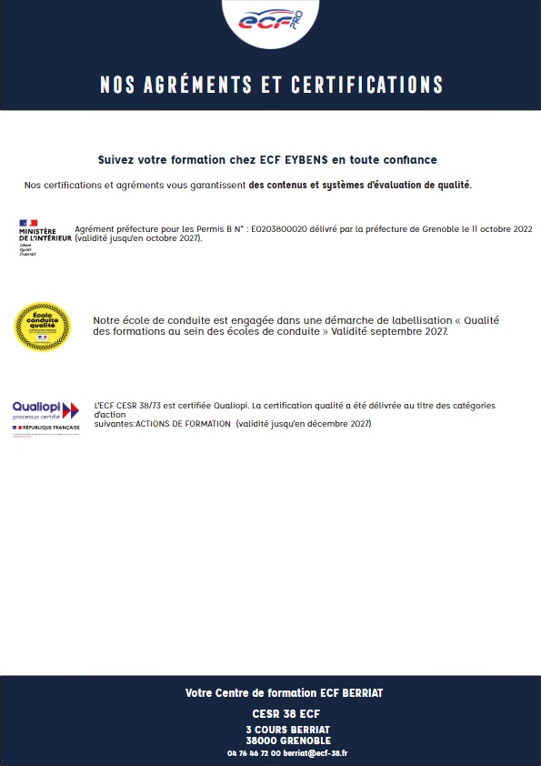 La vocation de l'agence ECF EYBENS est de proposer un accompagnement permettant de réussir le permis de conduire voiture, adaptées à votre rythme, à votre budget et bien sûr selon vos envies.