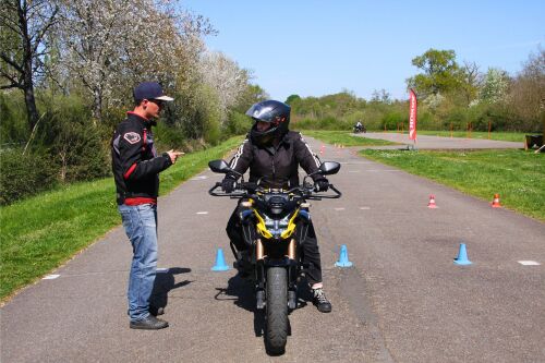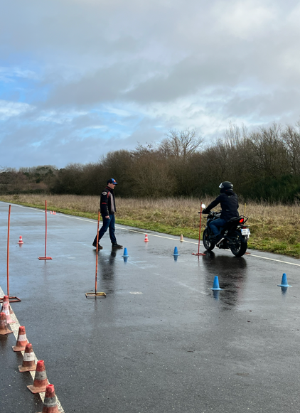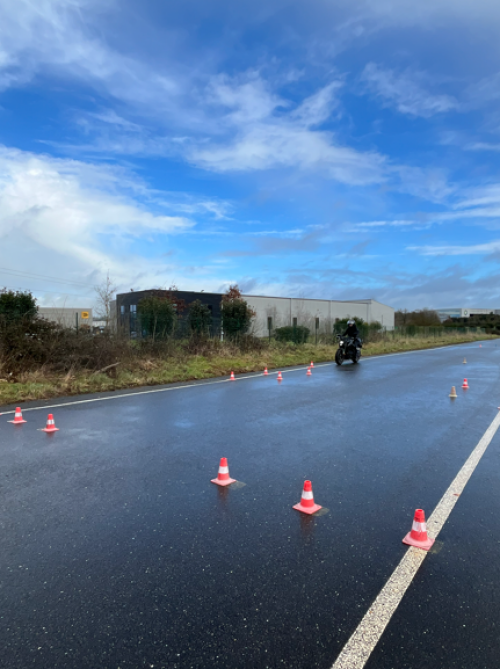 Vous travaillez les bases : équilibre, maniabilité, freinage, slalom, évitement… sur une piste dédiée près de Rennes