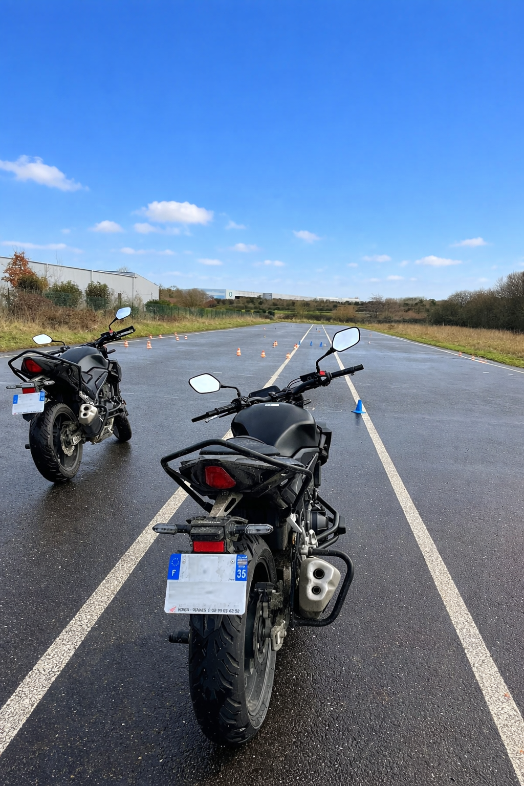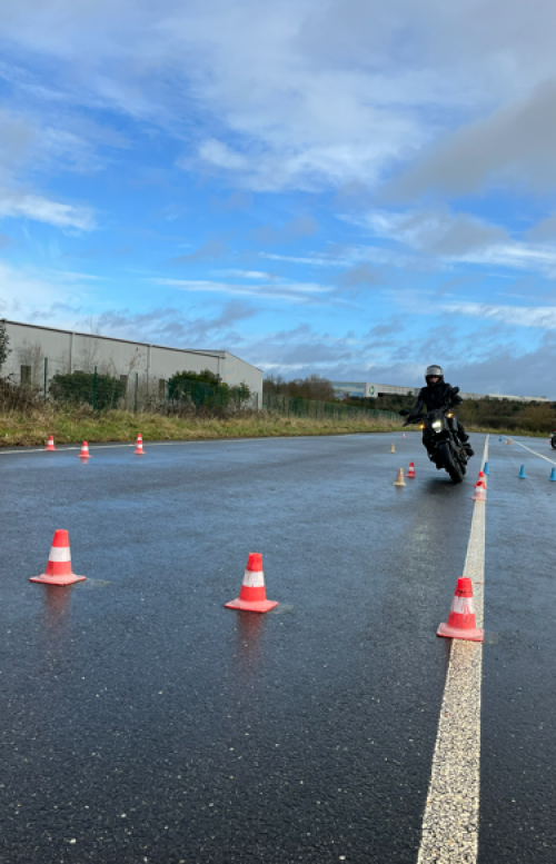 Vous travaillez les bases : équilibre, maniabilité, freinage, slalom, évitement… sur une piste dédiée près de Rennes